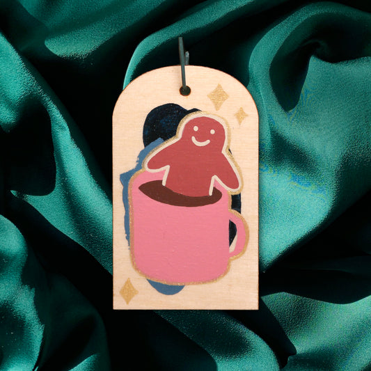 Gingerbread Hot Choco-Tub Hand-painted Wood Ornament/Gift Tag | Christmas 2023